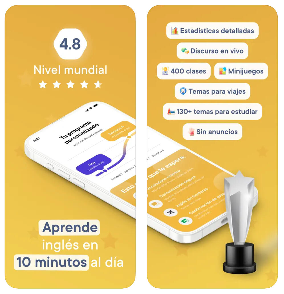 Aprende inglés en minutos con lecciones atractivas, practica con contenido narrado por hablantes nativos y sigue tu progreso sin esfuerzo. No se necesitan conocimientos previos de idioma.